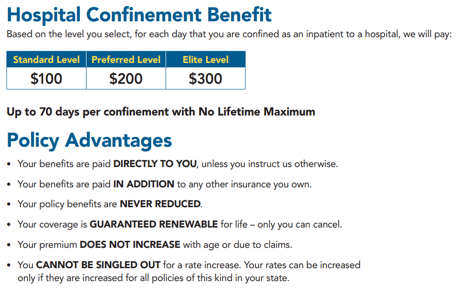 Our Hospital Indemnity Plan provides per diem cash payouts for each day you're hospitalized,